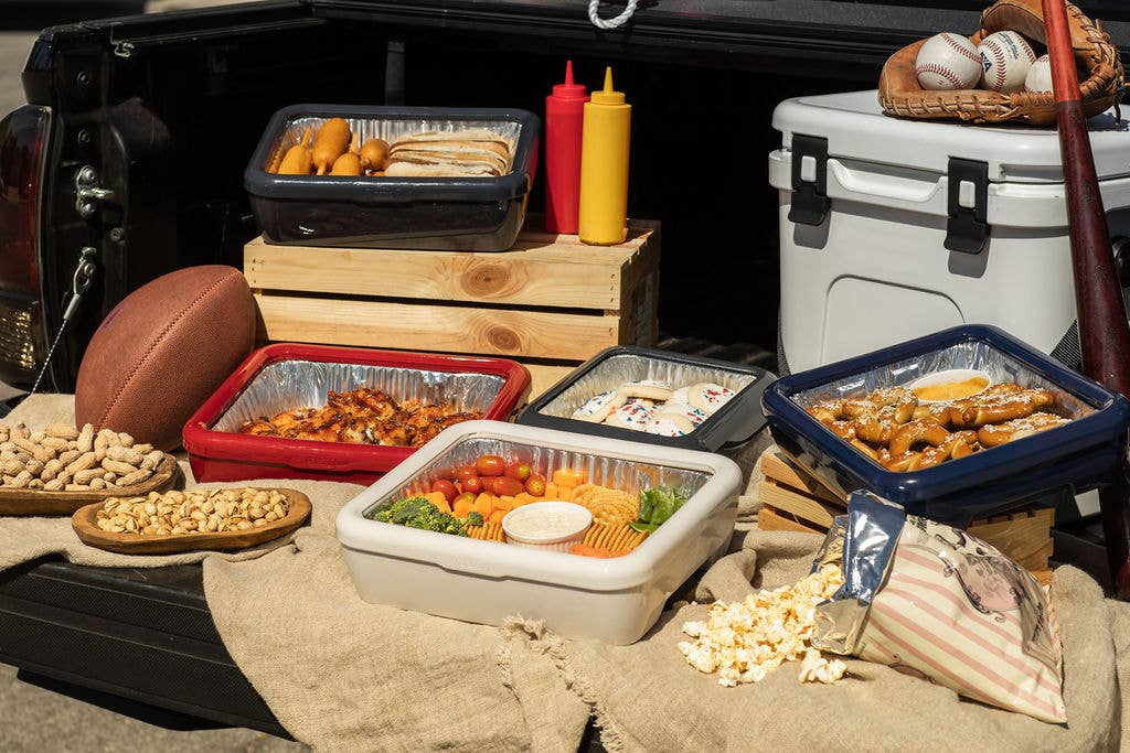 WHAT IS A FANCY PANZ®: Fancy Panz are used to dress up, protect and serve from a foil pan. Perfect for summer events such as BBQs, picnics, the beach, the cabin, camping, boating, 4th of July, Labor Day and more! Our premium pans are sized to accommodate the included hot/cold gel pack so food can easily be kept at the desired temperature. WHAT'S INCLUDED: 1 removable top/trivet 1 “half size” foil pan (approx. 11.75 x 9 x 2.5) 1 hot/cold gel pack 1 reusable serving spoon EASY TO USE: Open the frame, place your filled foil pan inside, and snap on the clear lid. Works with hot or cold food, straight from the oven or fridge. TWO WAYS TO SERVE: Use the clear lid as a trivet or keep it on to maintain food temperature and keep bugs out. EASY CLEANUP: Remove the foil pan and take your Fancy Panz home—leave the leftovers behind. IDEAL FOR TRAVEL: Stackable and sturdy, Fancy Panz prevent spills during transport. *All Fancy Panz are BPA-free, dishwasher safe, and proudly made in the USA!